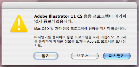 emoticon_096 현재 일러스트를 삭제하고 다시 재설치를 해보세요. 프로그램과 반드시 사용자 홈폴더>라이브러리>프리퍼런스에 있는 일러스트 관련파일도 삭제하고 설치를 하세요. ========= ▷▶☎ 잘 해결이 안되신다면.. 준[A/S 판매]를 클릭후 <자기 소개>를 마우스로 눌러보세요.