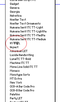HY부활서체가 왜 영문서체 사이에 있는걸까요? ;;