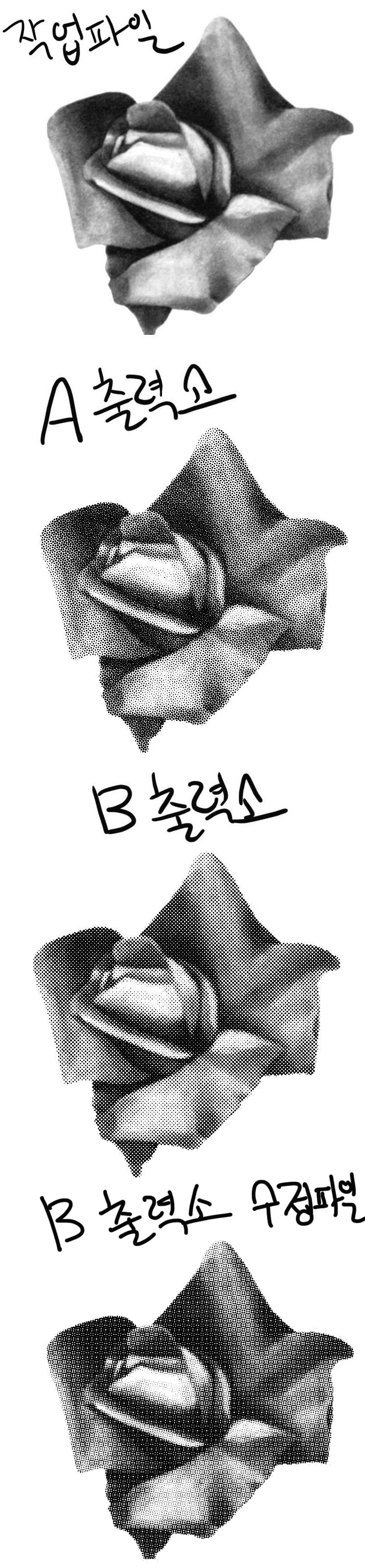 의뢰를 했는데 할수없다고 합니다ㅠㅠ 항상 A출력소에서는 저런모양의 망점형태로 뽑아주셨는데