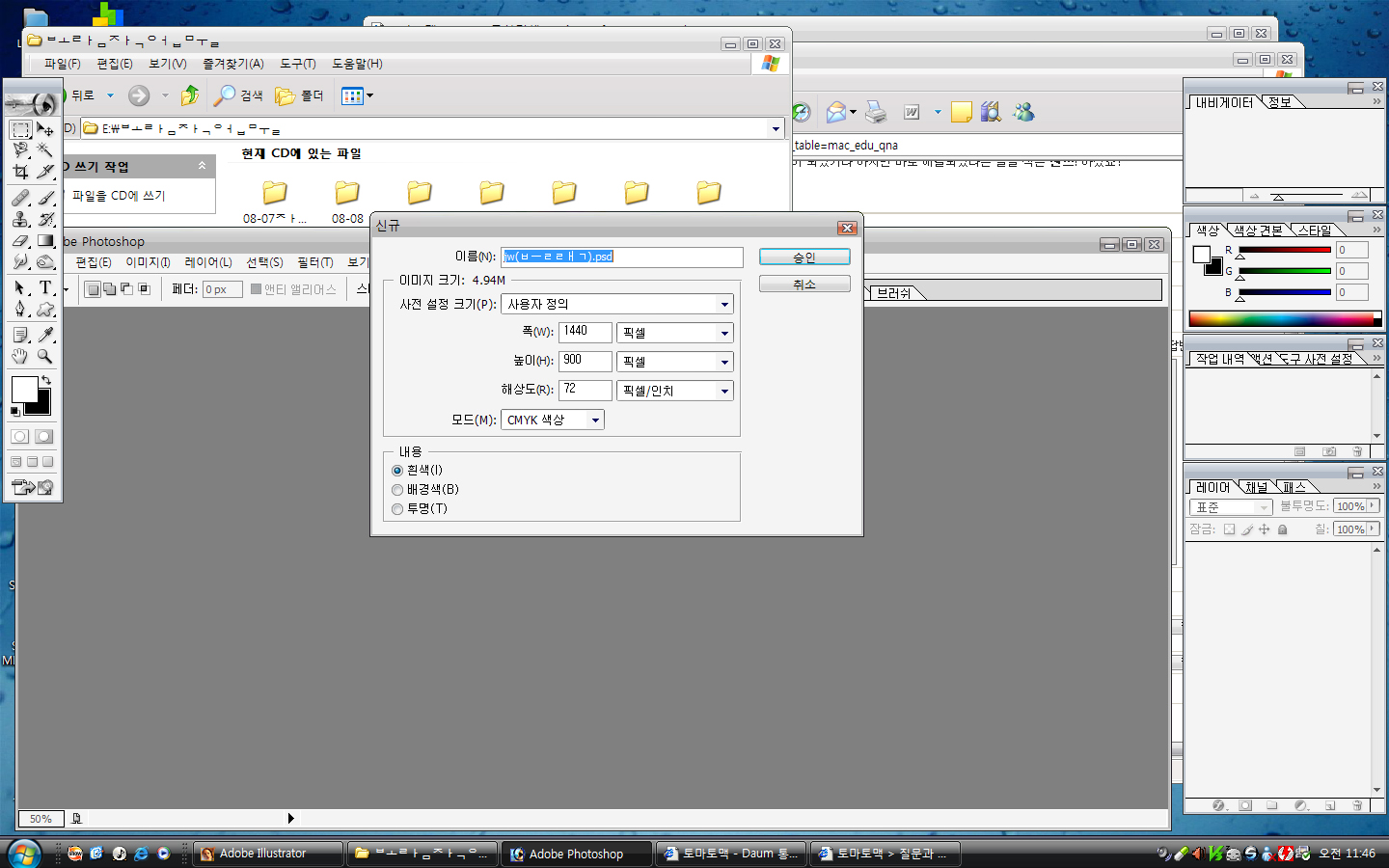 근데 포토샵 new도큐멘트 열때처럼 화면이 뜨고